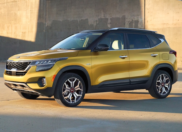 The Kia Seltos is an all-new model in the Kia SUV lineup. It offers class-leading cargo space and a rear seat that can fit adults. Most models have AWD, and most models also have an active safety feature suite. The Seltos is a city-friendly subcompact SUV, but it has plenty of rugged styling as well. Along with AWD, the Seltos features a locking center differential and decent ground clearance. The Seltos comes with two engine choices in the 2.0-liter four-cylinder that makes 146 horsepower and a turbo 1.6-liter that makes 175 horsepower. The combined fuel economy for the LX and EX trims with the 2.0-liter engine is 29 MPG. The combined fuel economy for the S 2.0 trim averages 31 MPG. The top trims of the S 1.6 and the SX with the turbo four offer 27 MPG combined fuel economy.