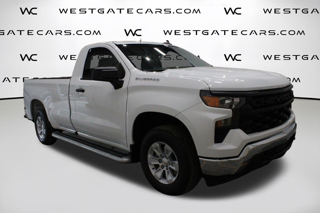 Clean CARFAX. CARFAX One-Owner. 10-Speed Automatic, Black Cloth, 170 Amp Alternator, 2 Speakers, 2-Speaker Audio System, 220 Amp Alternator, 3.23 Rear Axle Ratio, 3.42 Rear Axle Ratio, 3.5" Monochromatic Display Driver Info Center, 4-Wheel Disc Brakes, 40/20/40 Front Split Bench Seat, ABS brakes, Air Conditioning, Auto High-beam Headlights, Automatic Emergency Braking, Auxiliary External Transmission Oil Cooler, Black (Semi-Gloss) Front Bumper, Black (Semi-Gloss) Rear Bumper, Bluetooth® For Phone, Brake assist, Chevrolet Connected Access Capable, Compass, Delay-off headlights, Driver door bin, Dual front impact airbags, Dual front side impact airbags, Electrical Steering Column Lock, Electronic Cruise Control, Electronic Stability Control, External Engine Oil Cooler, EZ Lift Power Lock & Release Tailgate, Following Distance Indicator, Forward Collision Alert, Front anti-roll bar, Front Center Armrest w/Storage, Front Chrome Bumper, Front Frame-Mounted Black Recovery Hooks, Front Pedestrian Braking, Front reading lights, Front wheel independent suspension, Fully automatic headlights, HD Rear Vision Camera, Heated door mirrors, Heated Power-Adjustable Outside Mirrors, Illuminated entry, Inside Rear-View Mirror w/Tilt, IntelliBeam Automatic High Beam On/Off, Lane Keep Assist w/Lane Departure Warning, Locking Tailgate, Low tire pressure warning, Manual Tailgate Function w/No EZ Lift, Manual Tilt Wheel Steering Column, Occupant sensing airbag, OnStar & Chevrolet Connected Services Capable, Outside temperature display, Overhead airbag, Overhead console, Panic alarm, Passenger door bin, Passenger vanity mirror, Power door mirrors, Power Front Windows w/Driver Express Up/Down, Power Front Windows w/Passenger Express Down, Power steering, Power windows, Preferred Equipment Group 1WT, Premium audio system: Chevrolet Infotainment 3, Radio data system, Radio: Chevrolet Infotainment 3 System, Rear Chrome Bumper, Rear reading lights, Rear step bumper, Remote Keyless Entry, Remote keyless entry, Rubberized-Vinyl Floor Covering, SiriusXM Delete, Solar Absorbing Tinted Glass, Speed-sensing steering, Standard Suspension Package, Standard Tailgate, Tachometer, Tilt steering wheel, Traction control, Trip computer, Variably intermittent wipers, Vinyl Seat Trim, Voltmeter, Wheels: 17" x 8" Bright Silver Painted Aluminum, Wheels: 17" x 8" Ultra Silver Painted Steel, Wi-Fi Hot Spot Capable, 10-Speed Automatic, Black Cloth.