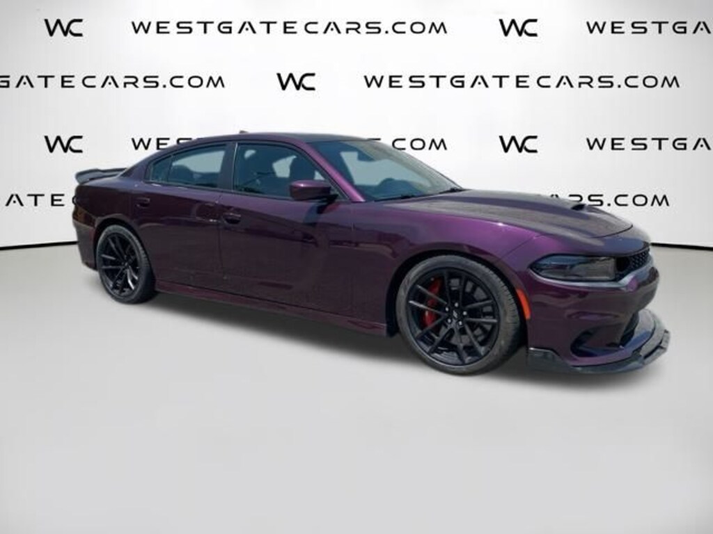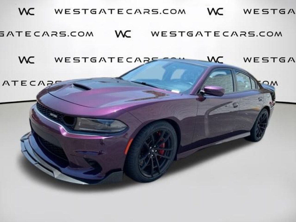 Black Artificial Leather, 1-Yr SiriusXM Guardian Trial, 2-Piece Shark Fin Antenna, 392 Fender Decal, 4G LTE Wi-Fi Hot Spot, 5-Year SiriusXM Traffic Service, 5-Year SiriusXM Travel Link Service, 8.4" Touchscreen Display, All Speed Traction Control, Apple CarPlay, Auto Adjust In Reverse Exterior Mirrors, Auto-Dimming Exterior Driver Mirror, Black-Edged Premium Floormats, Blind Spot & Cross Path Detection, Body Color Exterior Mirrors, Brembo 6-Pot Fixed Front Caliper Brakes, Carbonite Interior Accents, Daytona Decals Hood/Roof/Trunk, Daytona Edition Group, Daytona Front Grille Badge, Daytona I/P Badge, Daytona Logo Nappa/Alcantara Seat, Driver & Passenger Lower LED Lamps, Dynamics Package, Exterior Mirrors Courtesy Lamps, Exterior Mirrors w/Heating Element, Flat-Bottom Steering Wheel, For Details, Visit DriveUconnect.com, Front Overhead LED Lighting, Gloss Black I/P Cluster Trim Rings, Google Android Auto, GPS Antenna Input, GPS Navigation, HD Radio, Heated 2nd Row Seats, Heated Front Seats, Illuminated Rear Cupholders, Integrated Center Stack Radio, Integrated Voice Command w/Bluetooth, Media Hub (2 USB, AUX), MOPAR Cold Air Intake System, Navigation & Travel Group, Power 2-Way Driver Lumbar Adjust, Power 2-Way Passenger Lumbar Adjust, Power Front Driver/Passenger Seats, Power Tilt/Telescope Steering Column, Premium-Stitched Dash Panel, Quick Order Package 21W Scat Pack, Radio: Uconnect 4C Nav w/8.4" Display, Radio/Driver Seat/Mirrors Memory, Rear Seat Armrest w/Storage Cupholder, Rhombi 2-Pc Wheel Center Cap, SiriusXM Traffic Plus, SiriusXM Travel Link, USB Host Flip, Ventilated Front Seats, Wheels: 20" x 9.5" Forged/Painted Aluminum.