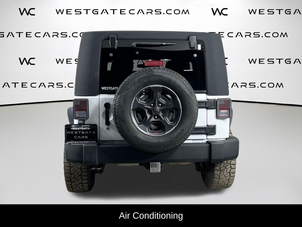 Inside, the cabin is well-equipped with a host of convenient features, including air conditioning, a leather-wrapped steering wheel, and a chrome/leather-wrapped shift knob. The 17-inch aluminum wheels not only look great but also provide a smooth, confident ride. Whether you're navigating the city streets or tackling rugged terrain, this Wrangler Sport is up for the challenge.