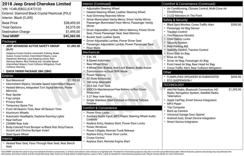 The 2018 Jeep Grand Cherokee Limited is a midsize SUV that combines luxurious features with legendary off-road capability. Positioned as a premium trim level in the Grand Cherokee lineup, the Limited model offers a range of upscale amenities and advanced technology.