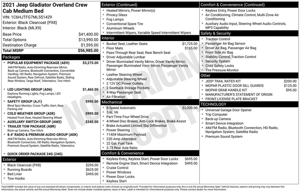 This 2021 Jeep Gladiator Overland comes equipped with an impressive array of premium features, including: