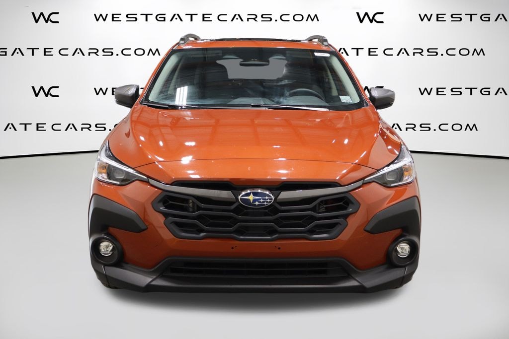 10-Way Power Driver's Seat, 3.90 Axle Ratio, 4-Wheel Disc Brakes, 6 Speakers, ABS brakes, Air Conditioning, All-Weather Floor Liners, All-Weather Package, Alloy wheels, AM/FM radio: SiriusXM, Anti-whiplash front head restraints, Auto High-beam Headlights, Auto-Dimming Exterior Mirror w/Approach Light, Auto-Dimming Mirror w/Compass & HomeLink, Automatic temperature control, Blind Spot Detection w/Rear Cross-Traffic Alert, Brake assist, BSD/RCTA & Moonrf & All Weather Pkg & Pwr Dr. Seat, Bumpers: body-color, Cargo Net, Crosstrek Mirror Package, Driver door bin, Driver vanity mirror, Dual front impact airbags, Dual front side impact airbags, Electronic Stability Control, Emergency communication system: STARLINK Safety and Security (Subscription Required), Exterior Parking Camera Rear, Four wheel independent suspension, Front anti-roll bar, Front Bucket Seats, Front Center Armrest, Front dual zone A/C, Front fog lights, Front reading lights, Fully automatic headlights, Heated Exterior Mirrors, Heated Front Seats, Heated Wipers, Illuminated entry, Knee airbag, Low tire pressure warning, Occupant sensing airbag, Outside temperature display, Overhead airbag, Overhead console, Panic alarm, Passenger door bin, Passenger vanity mirror, Power door mirrors, Power Moonroof, Power steering, Power windows, Premium Cloth Upholstery, Radio data system, Radio: Subaru STARLINK 11.6" Multimedia Plus Sys, Rear anti-roll bar, Rear seat center armrest, Rear window defroster, Rear window wiper, Remote keyless entry, Security system, Speed control, Speed-sensing steering, Split folding rear seat, Spoiler, STARLINK/Apple CarPlay/Android Auto, Steering wheel mounted audio controls, Tachometer, Telescoping steering wheel, Tilt steering wheel, Traction control, Trip computer, Turn signal indicator mirrors, Variably intermittent wipers, Wheels: 17" x 7.0J Dark Gray Aluminum Alloy.